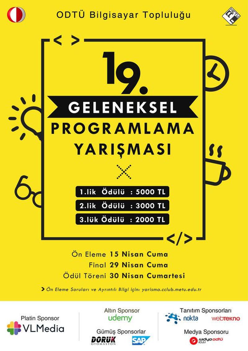 Ön eleme için kayıt yaptırmak ve yarışmayla ilgili daha çok bilgi almak için: yarisma.cclub.metu.edu.tr