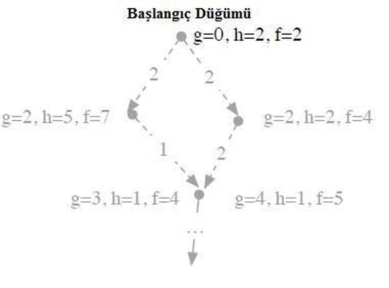 Tutarlı olmayan bir h fonksiyonuna şekil 3’de bir örnek gösterilmiştir. Şekil 3’de h fonksiyonunun tutarsız olduğunu f fonksiyonunun önce 7’ye yükselip daha sonra 4’e düşen değerlerinden anlamak mümkündür. Tutarlı bir fonksiyonda f değerleri alta indikçe artmalıdır.