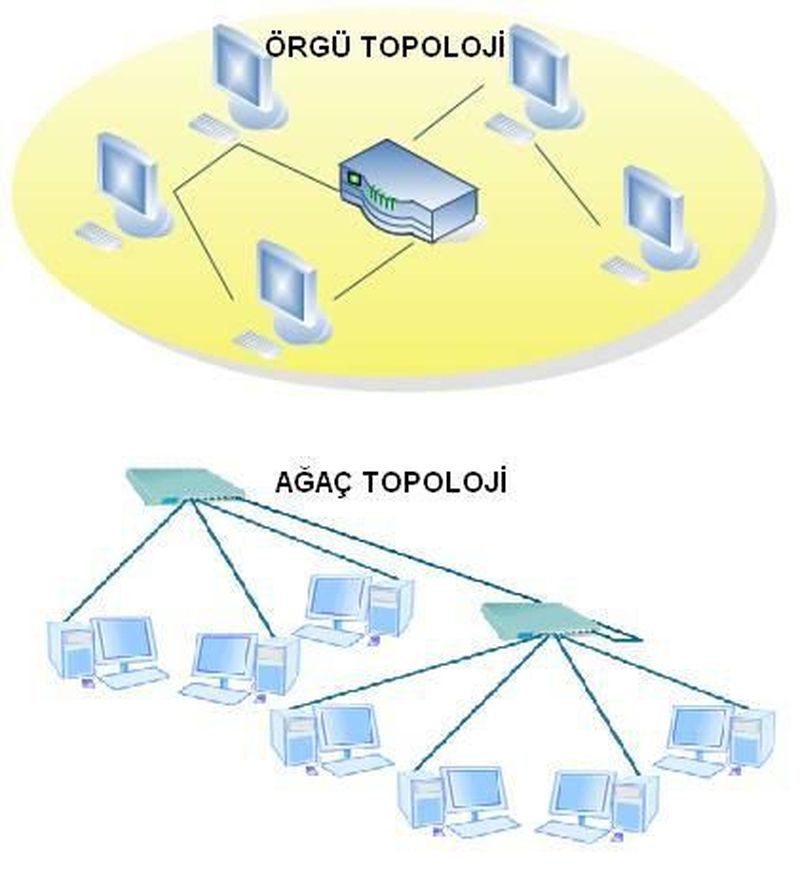 Yerel alan ağlarından kullanılan kayda değer 3 tip topoloji bulunmaktadır: