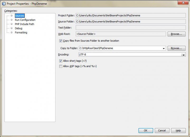 Netbeans ile oluşturduğunuz PHP projeleri 3 şekilde çalıştırılabilmektedir: