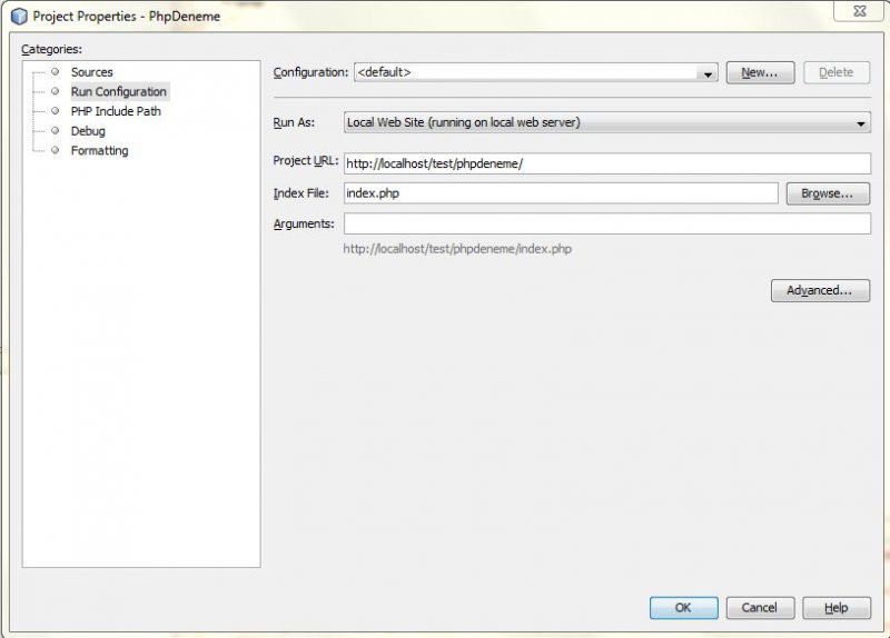 a.Yerel Web Sunucusu: Eğer Netbeans'in çalıştığı bilgisayarda bir web sunucunuz varsa kodlarınızı bu sunucu üzerinde çalıştırabilirsiniz. Netbeans'in kodlarınızı çalıştırması için web sunucunun ulaşabileceği bir dizinde bulunmaları gerekmektedir. PHP projenizi çalıştırdığınız zaman Netbeans kodlarınızı bu dizine kopyalar ve tarayıcınızı bu dizine karşılık gelen URL'e yönlendirir.