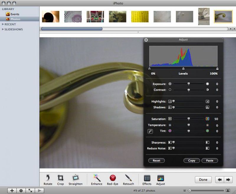 Adjust: Bu butona bastıktan sonra karşınıza çıkan küçük penceredeki ayarlar sayesinde, resmin her türlü ışık, renk, parlaklık, kontrast, gürülrü, doygunluk, vurgulama, gölgeleme, keskinlik, vb.dağılımlarını değiştirebilirsiniz. Hepsini denemekten çekinmeyin, ne kadar deneme yanılma ile deney yaparsanız o kadar istenene yakın düzenlemeler yapabiliyorsunuz.