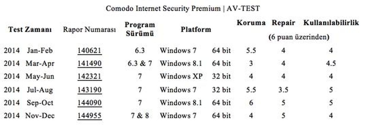 Tablo 1. Comodo Internet Security Premium üzerinde gerçekleştirilmiş AV-TEST test sonuçlarıComodo Internet Security Premium – Sonuç Bireysel kullanıcı pazarında %2.6 pazar payı ile hizmet veren Comodo Internet Security, düşük bir pazar payı ile hizmet vermektedir. Öyle ki, ücretsiz olarak son kullanıcı ile buluşan ürün, pek çok noktada en iyi güvenlik uygulamaları arasında yer almaktadır. Pazar payının düşük olmasına neden olarak, SSL piyasasında liderliğe oynamak ya da lider olmak üzerine kurgulanmış bir şirket politikası gösterilebilir. En nihayetinde SSL’i kullanacak ya da SSL’e güvenecek kişi de son kullanıcı olduğuna göre Comodo Internet Security’nin mevcut pazar payını arttırmak üzerine eğilinmesi gereken bir noktadır. Bu noktada, ürün bazında Comodo Internet Security ile bu ürünün potansiyel müşterileri arasındaki mevcut iletişimin yetersiz olduğu düşüncesi akla gelmektedir. Zira maksimum faydayı en ucuza elde etme çabasında olması beklenen son kullanıcı, satın aldığı ürün ile rekabet edebilecek ve ikame edilebilecek ücretsiz bir ürün varken, ancak yeterli tanıtımın olmadığı ya da marka güvenilirliğinin tam ve gerçek anlamda sağlanamadığı durumlarda bu hareket biçimini benimseyecektir. İşte tam da bu noktada yapılması gereken, pazarda bir “tekel” olabilecek derecede modern, kullanıcı dostu, bilişim teknolojileri uzmanlarının ihtiyaçlarının dahi ihtiyaçlarına karşılık verebilecek denli güçlü bir ürün varken, neden müşteriler başka bir şirketin geliştirdiği güvenlik uygulamasına güvensin ya da Comodo varken neden başka bir ürünü tercih etsin?**Kaynakça**