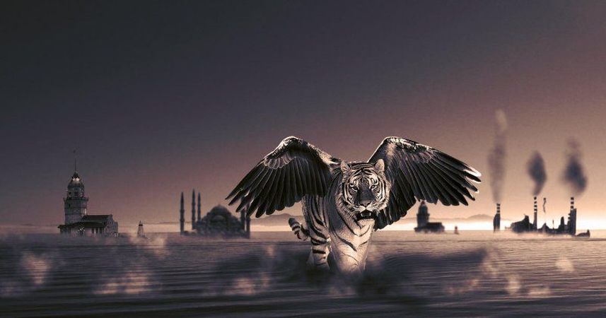Sadece sağ kanatla çalışmaya başlayalım. Eğer sol kanadın olduğu katmanı görmek istemiyorsanız, şimdilik katman penceresinde, sol kanadın olduğu katmanın sol tarafındaki göz resmi olan küçük pencereye tıklamanız yeterli. Şimdi sağ kanat katmanına geri gönüp, Move Tool ile istediğimiz konuma hareket ettirip, bu katmanı Smart Object'e çevirerek maske uygulayabiliriz önceki adımlardaki gibi. Add Layer Mask dedikten sonra boyama fırçasıyla birlikte, fırçanın yumuşaklığını ve boyutunu ayarlayarak, kanadın gövdeyle birleştiği noktaları biraz da yumuşak ve az belirgin yapabiliriz.(bir nev-i silme işlemi) . Sağ kanat için maskeleme işlemini bitirdiğimizde, sol kanadı da hareket aracıyla uygun posizyona getirdikten sonra şimdi kanatların su üzerindeki gölgelerine geçelim. Suyun üzerinde “gölge” adında yeni bir katman oluşturarak işe başlayabiliriz. Bunun için yumuşak bir boyama fırçası seçip, boyutunu ayarladıktan sonra ön plan rengi siyah iken gölge olması ihtimal yerleri boyamakla başlıyoruz. Eğer çok taşırdığınızı düşünürseniz Erase Tool ile silebilirsiniz. Ardından katmanın opaklığını katmanlar penceresinden azaltıp, gölge havasını daha etkili bir şekilde verebilirsiniz.