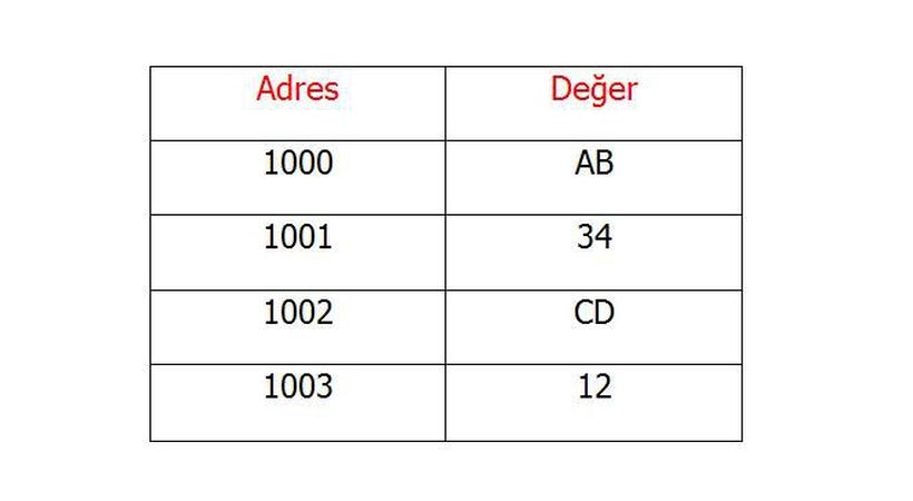 Bu yöntemde önemli bayt en küçük adreste depolanır. Bu durumda sayımız tablodaki gibi olur.