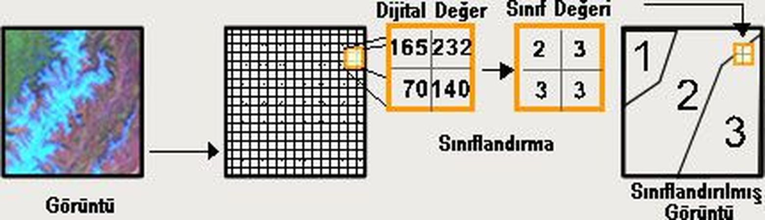 Sınıflandırma bir görüntünün bütününü bazı parametrelere göre parçalayarak anlamlandırma işlemidir. Sınıflandırma, Kontrollü ve Kontrolsüz olmak üzere iki sık kullanılan proserdüre ayrılabilir.