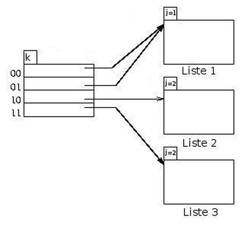 Genişleyebilen hash'leme mantık olarak doğrusal hash'lemeyle çok büyük benzerlik gösterse de yapısı biraz farklıdır. En önemli farkı, genişleyebilen hash'lemede listelerin boyutu sabittir; yani eğer iki boyutlu dizin tanımını hatırlayacak olursak ikinci boyutta bir büyüme gözlenmez. Buna karşın, birinci boyutta -yani direk olarak tablo büyüklüğü denilen sayıda- bir büyüme olur. Benzerliklerine gelecek olursak, aynı doğrusalda olduğu gibi anahtar değerinin k bitine bakılır; ancak bu sefer son k bitine değil ilk k bitine bakılır. Bir büyüme koşulu vardır; yalnız bu sefer büyüme koşulu, doluluk çarpanının belli bir değere ulaşması değil de hash tablosunun herhangi bir indisinde tutulan bir listenin dolmasıdır. Liste dolduğunda tüm tablonun büyüklüğü iki katına çıkar. Bu büyümeyle artık ilk k+1 bite bakıldığı için büyüklük iki katına çıkmış olur. Aslında var olan liste sayısı yine bir artar. Yeni adres değerleri eğer büyüme olmadıysa eskiden tuttuğu yeri göstermeye devam eder; fakat büyüme gerçekleşirse yeni oluşan listeyi göstermeye başlar. Burası biraz karışık gibi durabilir; o yüzden daha iyi açıklamam gerektiğini düşünüyorum. Tekrar doğrusal hash'lemeyi düşünecek olursak, orada tablonun boyutu birer birer artıyordu ve sadece sınırdan öncekiler için k+1 bite bakılıyordu. Bunu şu şekilde de yorumlayabiliriz: aslında diğerleri için de k+1 bite bakılıyor; ancak sadece k+1'inci biti fark ediyorsa iki adres değeri aynı listeyi işaretliyor. Aynı mantıkla genişleyebilen hash'lemede de büyümenin ardından k+1 bite bakılır; ancak bazı adresler (büyütmeye ihtiyaç duyulmayanlar) aynı listeleri göstermeye (önceki k bite bakılırken nereyi gösteriyorlarsa) devam ederler. Genişleyebilen hash'lemede bunlara ek olarak, bu yapıyı kolaylaştırmak adına her listenin ayrıca tuttuğu bir j değeri vardır. İşte tam olarak az önce bahsettiğimiz durumlarda o k+1 bitin sondan kaç tane biti gereksiz bu sayıyı tutuyor. Büyüme olduğu halde aynı yeri göstereceklerse bu j değeri de bir artar. Bu sayede yine aynı bitleri kontrol etmiş oluruz. Tabii ki, söylemedim ama, aynen doğrusal hash'leme de olduğu gibi genişleyebilende de büyümenin ardından dolan listedeki elemanların tekrar dağıtımı yapılır. Yeni açılan listeye gitmesi gerekenler öncekinden silinir ve yeni listeye taşınır.