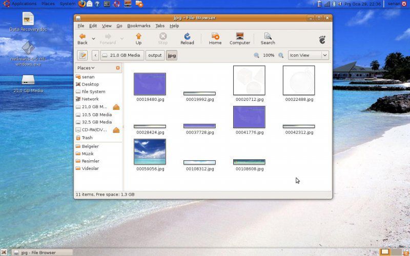 Hepsi bu kadar. Şimdi /media/disk-1/output klasörünü açalım. Eğer yaptığımız işler doğruysa burada bir jgp adlı klasör bulunmalıdır. Eğer -t parametresini kullanmasaydık foremost tüm dosya tiplerini araştıracak ve geri getirebildiği dosyaları, tip isimlerine sahip olan klasörlere atacaktı.