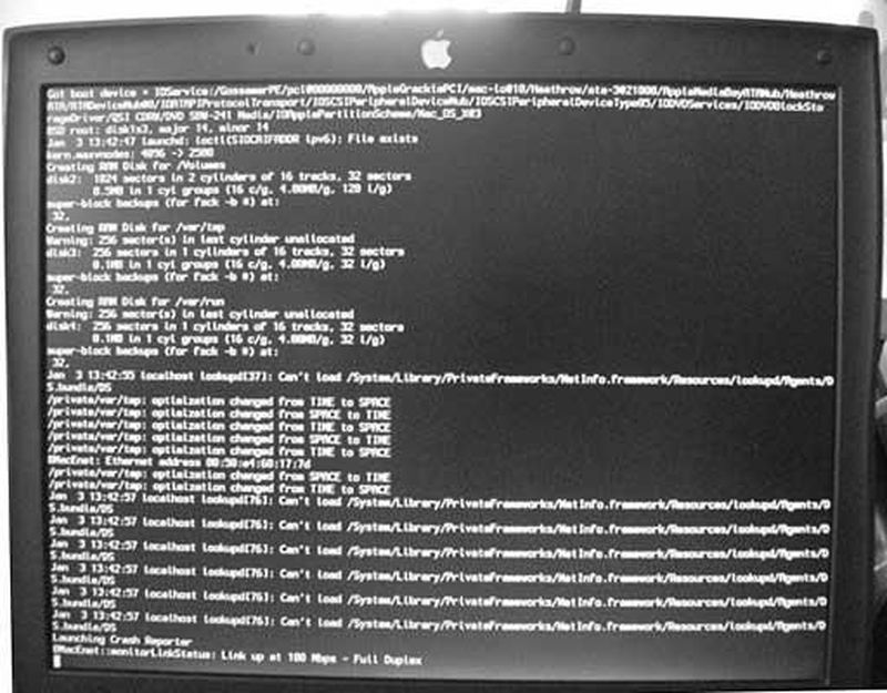 İncelediğimiz durumda verbose modda açabildikten sonra incelediğimiz ekran çıktısında bizi sistem kayıtlarına yönlendirdi. Burada da eksik sistem dosyasının adını bulduk, ve diyelim ki bu dosyayı bir şekilde internetten veya yükleme diskinde bulduk. Şimdi yapacağımız tek şey bu dosyayı veya framework'ü yerine koymak. Bunun için eğer dosya yükleme cd'sinde ise cd'den boot ederek terminal açmamız lazım; başka bir yerde ise de single user mode veya verbose mode kullanarak komut satırına düşmemiz gerek. Muhtemelen iki durumda da başka şekilde boot ettiğimiz için harddiskimizi ya bağlamamış olacak, ya da sadece okunur açmış olacak. Bunun için önce diskimizin adini öğreniyoruz, sonra da bağlıyoruz.