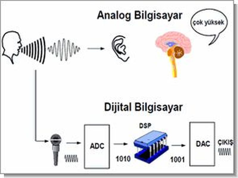 - Ses İşleme: İlk olarak analog elektrik sinyaline dönüştürülen ses, elektronik ortamda dijital verilere dönüştürülür. Bilgisayarda işlenen ses, çıktısı alınırken yine analog sinyale dönüştürülüp ses çıkış aygıtlarına aktarılır.