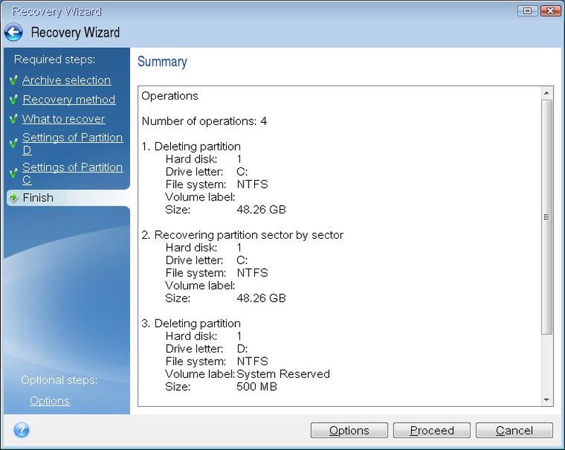 Şekil 2.11. Yapılan ayarlar kullanıcıya özet olarak sunulmaktadır. Proceed (Türkçe. İlerle) butonu tıklanacak olursa program yedek alma işlemine başlayacaktır.