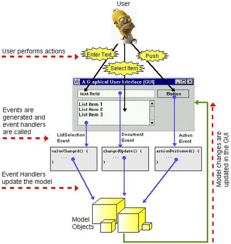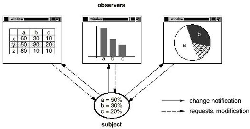 Böyle bir durumdaki iki sınıfın arasındaki bağlantı seviyesini nasıl azaltabiliriz, ve böylece daha esnek bir sistem elde ederiz? İşte bu noktada “Gözlemci Deseni” işimize yaramaya başlıyor. “Gözlemci Deseni”, iki temel bileşenden oluşmaktadır: “_Gözlemci_” ve “_Gözlenen_”.