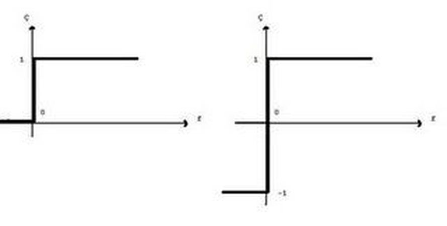f in sonucunu da iki gruba ayırmak için, belli bir değerden büyükleri 1 küçükleri 0 a ya da -1 e eşitleyen bir fonksiyon kullanırız.