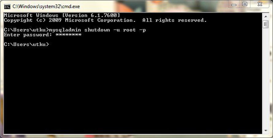 MySQL sunucunuzu kapatmak için yeni bir komut satırı açarak