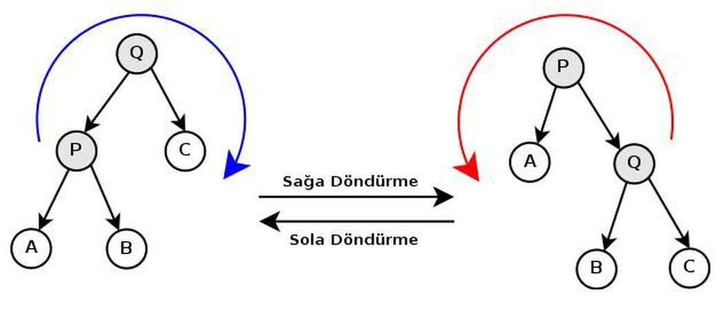 AVL ağacının önemli işlemleri ağacı dolaşma, yeni düğüm ekleme, düğüm arama, düğüm silme ve ağacı tekrar dengelemek için kullanılan döndürmelerdir.