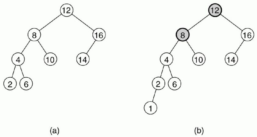 İkili arama ağacında her kökün sol çocuğu olan ağaçtaki bütün düğümler kökten küçük, sağdakilerse kökten büyük olmak zorundadır. Bu sayede ikili arama ağacında düğüm arama bir dizide aramaktan daha verimli olur, ortalamada O(log n) zaman alsa da ağaç dengeli bir biçimde dağılmadığı zaman O(n)e yaklaşır. Bu sorunu ortadan kaldırmak için AVL ağacını kullanabiliriz. Herhangi bir ikili arama ağacının AVL ağacı olmasının şartı ise bütün düğümlerin çocukları arasındaki yükseklik farkının en fazla bir olmasıdır. Resimdeki (a) ağacı AVL yapısına uygundur. Ama diğer ağaçta 8'in ve 12'nin çocukları arasındaki yükseklik farkı 2dir ve bu nedenle (b) ağacı AVL ağacı değildir.