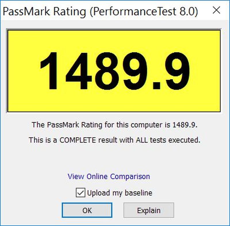 Şekil 3. Gerçekleştirilen işlemler sonunda PassMark Performance Test programının bilgisayarım için verdiği sonuç.