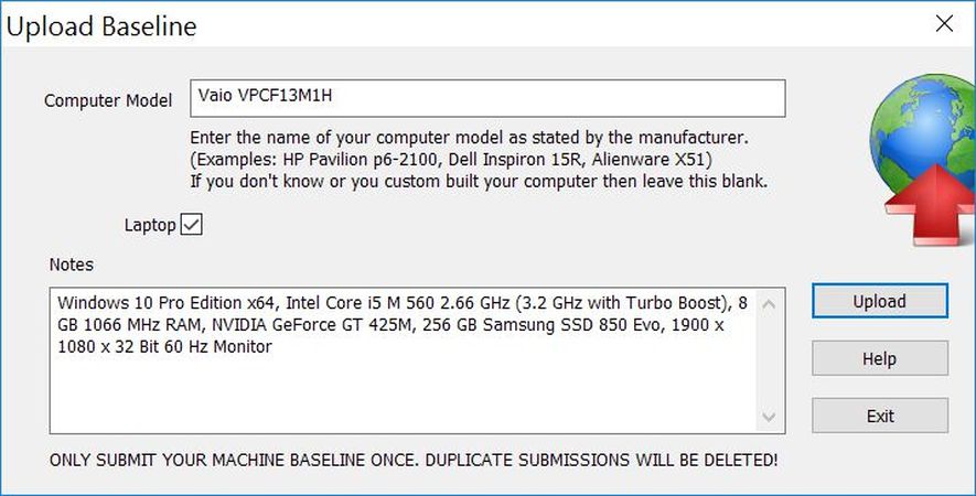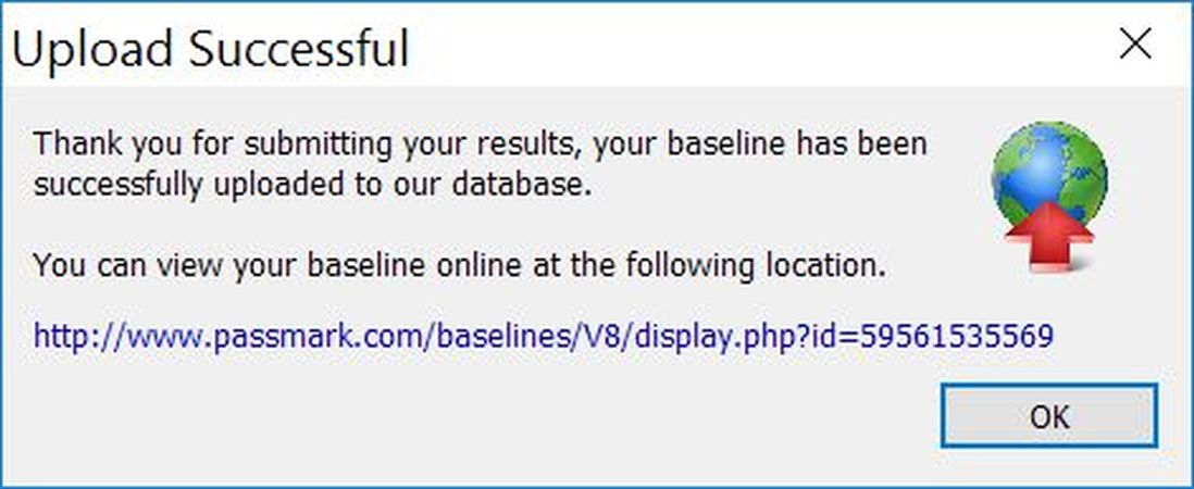 Şekil 4. Şayet “Upload my baseline” seçeneğini işaretlerseniz, ilgili sonuç PassMark Performance Test programının online veri tabanına eklenebilir.