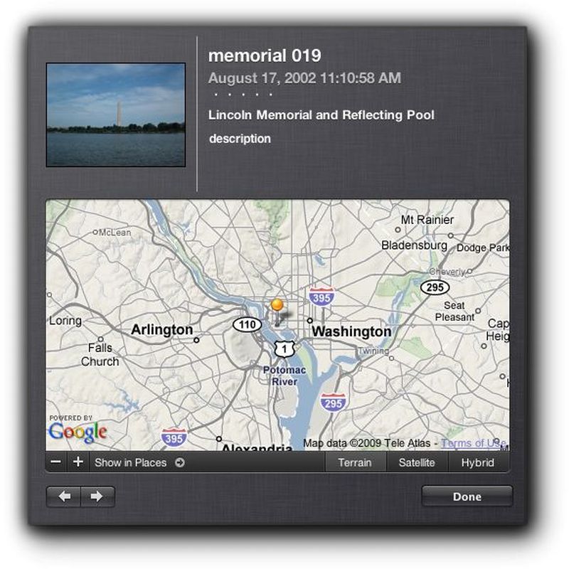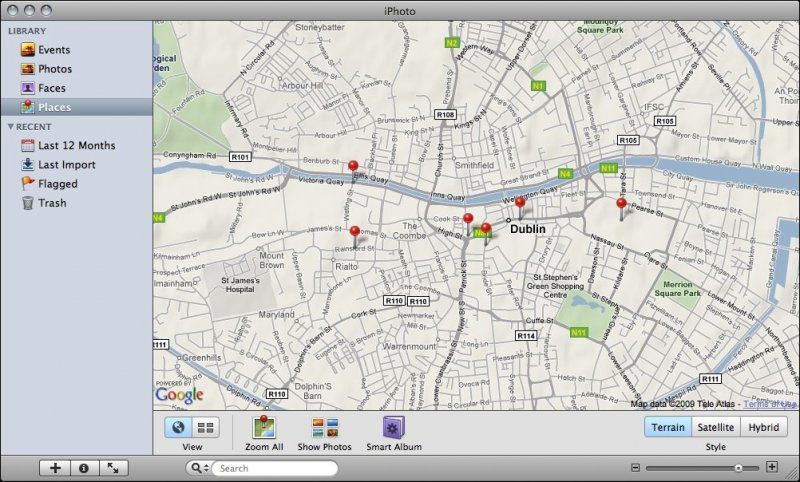 Bu biraz daha güncel teknolojiye dayanan bir özellik, çünkü fotoğraflarda çekilirken kameralar tarafından gömülen lokasyon bilgisine göre otomatik arşivleme yapıyor. Bu da bu özelliğin iPhoto tarafından yapılmasını istiyorsak GPS bilgisi alıp kaydedebilen bir makinemiz olmasını gerektiriyor, tabi bir iPhone da iş görür :) Ama ne iPhone'unuz ne de GPSli bir kameranız yoksa hala kendi yer etiketlerinizi kendiniz ekleyebilirsiniz. Sadece fotoğrafın çekildiği yerin ismini yazmaya başladığınızda iPhoto size bir dizi yer ismi sunacak ve bunların içinden seçebilirsiniz. Çoklu yer imi eklemeyi ise bir aktiviteyi (birazdan anlatacağım), bir albümü veya bir grup fotoğrafı seçtiğinizde iPhoto hepsine birden dilediğiniz yer etiketini atayacaktır. Ayrıca eğer girdiğiniz yeri iPhoto otomatik olarak göstermediyse, 'New Place' diyerek istediğiniz yeri ekleyebilirsiniz: Karşınıza Google Maps açılacak ve burada pinlediğiniz yerin bilgisi fotoğrafınıza eklenecektir. Eğer çok spesifik bir yeri aramıyorsanız, sadece pinin etrafındaki çemberin çapını arttırarak tüm içindeki bölgeyi yeriniz olarak işaretleyebilirsiniz. Etiketledikten sonra bu fotoğraf arşivlerine ulaşmak istediğinizde de, hemen solda 'Faces' sekmesinin altında bulunan 'Places' sekmesine tıkladığınızda şekildeki gibi bir harita karşılayacak sizi. Harita üzerinden fotoğraflarınızı bulabileceğiniz gibi, sütün tarayıcısından ülke, şehir, mahalle ve ünlü mekanlara kadar özelleşip buradaki fotoğraflarınızı görebilirsiniz.