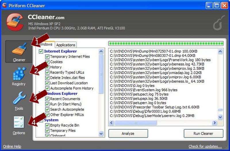 Internet Explorer bölümünde internette gezinirken bilgisayarınıza giren çerezler, daha sonra işinize yaramayacak olan geçici dosyalar, geçmiş adres satırı girdileri temizlenir. Windows Explorer bölümünde son açılan belgelerin kaydı, başlat-çalıştır bölümüne yazmış olduğunuz girdiler, diğer Explorer bağlantıları ve arama asistanındaki otomatik tamamlanan girdiler temizlenir.