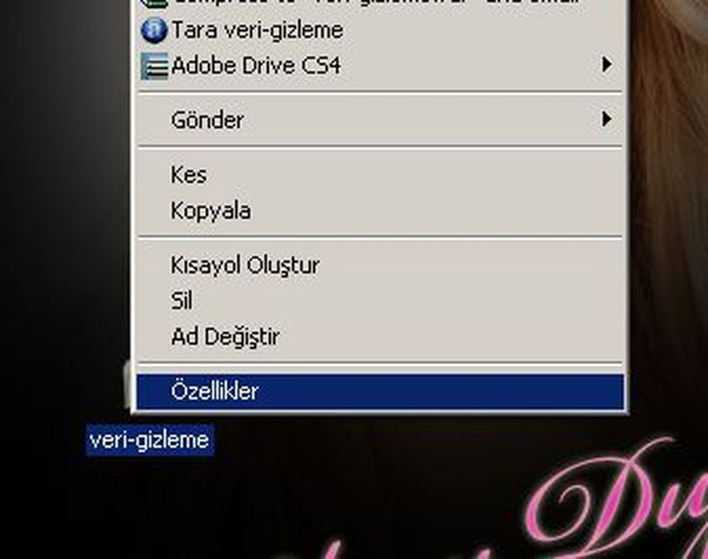 - Gizlenmek istenen dizinin özellikler menüsüne girilir.