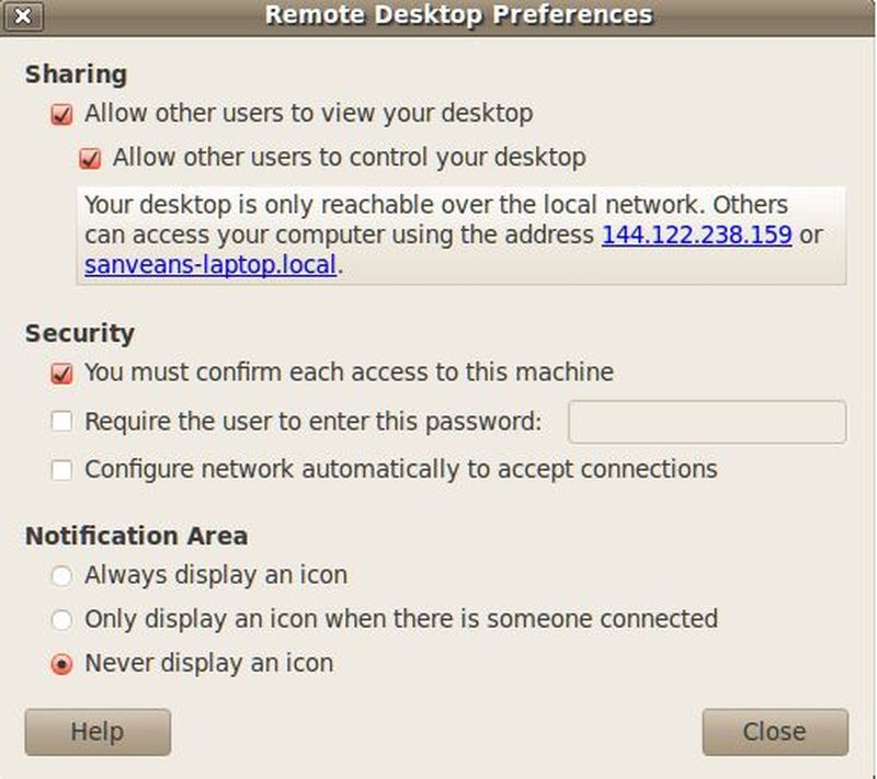 Gelelim bizim en çok hoşlaştığımız özelliğine : masaüstü paylaşma. Empathy bu özelliğini Vinagre adı verilen bir sanal ağ hesaplama istemcisi sayesinde GNOME masaüstünde uygulanabilir kılıyor. Masaüstü paylaşımını kullanabilmeniz için öncelikli şart, karşı tarafın da Empathy programını kullanıyor olması; yani 'her iki tarafın da özgürlükçü olması' lazım. :) Nasıl kullanılacağına gelecek olursak; konuşma penceresinde kişiler(contact) sekmesinde dosya transferi, sesli ve görüntülü arama gibi seçenekleri göreceğiniz gibi ayrıca “masaüstünü paylaş” adında bir seçenek daha var. Bu seçeneği seçtiğiniz zaman karşı tarafın masaüstünde yeni bir pencere açılır ve uzaktaki kullanıcı olarak adlandırabileceğimiz bu arkadaşınız sizin masaüstünüzü görmekle kalmayıp uygulamaları da çalıştırabilir(tabii onun yaptığı her şeyi siz da kendi masaüstünüzde görebiliyor oluyorsunuz). Yani ekranda bir adet imleç bulunuyor ve siz kendi imlecinizi hareket ettirmediğiniz sürece imlecin kontrolü diğer kullanıcıda oluyor. Bu özelliğin en güzel yanı birileriyle bir konu üzerinde çevrimiçi tartışılacağı veya bir programın vs. kullanımı anlatılacağı zaman adım adım takip edebildiğiniz için ve aynı zamanda istediğinizde masaüstüne müdahale edebildiğiniz için gayet etkileşimli bir ortam yaratılmış olması. Bu uygulamayı sonlandırmak için ise uygulamayı çalıştırdığımızda GNOME panelinde çıkmış olan masaüstü paylaşımı simgesi üzerine sağ tıkladığımızda çıkan bağlantıyı sonlandır seçeneğine tıklamamız yeterli. Ayrıca masaüstünde paylaşım sırasında çıkan o simgeye tıkladığınızda “uzak masaüstü ayarları” başlığı altında bir pencere çıkacaktır. Burada diğer kullanıcıların masaüstünüzü görmeleri ya da görmek için şifre istemeleri gibi ayarları da yapabilirsiniz. Buradan paylaşımın etkinliğini direk iptal de edebilirsiniz. Son olarak, aynı pencerede bilgilendirme simgeleri hakkında da değişiklikler yapabilirsiniz.