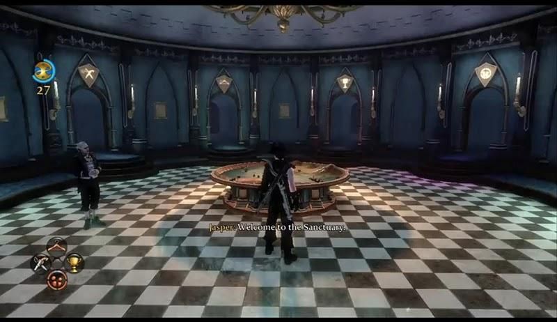 Oyunda menü adına bir şey de yok. Escape tuşuna basınca The Sanctuary'e gidiyoruz. Birkaç odadan oluşan boyutlararası bir mekan. Jasper'ımızın evi. Silahlarımıza, dış görünüşümüze, paramıza ve çoklu oyuncu seçeneklerine ayrılmış odalar mevcut. Karakterimizin durumunu gözden geçirmek, şeklini şemalini ayarlamak gibi bir menü aracılığıyla yapılacak şeyler artık The Sanctuary'nin yetki alanında. Oyunu kaydetmek için bile gerekli bölüme gidip o heykele elleşmemiz lazım.
