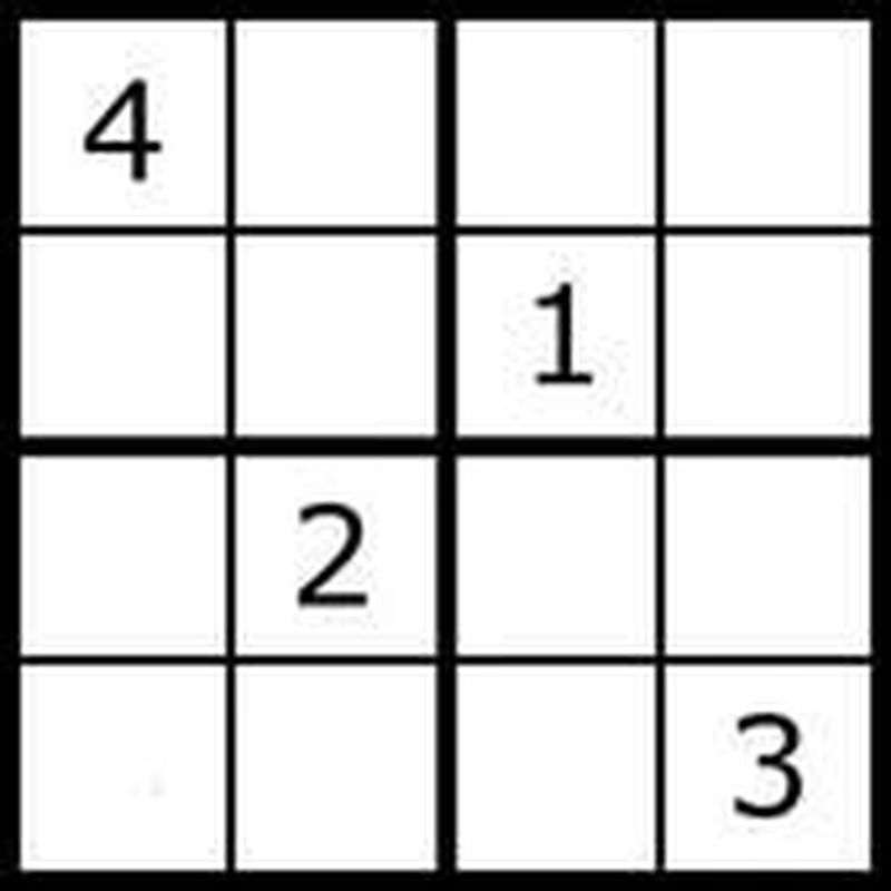 Başlangıçta problemimiz yandaki gibi olsun. Kısaca kullanacağımız tekniği özetlemek gerekirse; sol üst köşeden başlayarak kareleri 1’den 4’e kadar sayılarla dolduracağız. İlk olarak 1 yerleştirmeye çalışacağız ve gözetmemiz gereken 3 kuralı ihlal ediyorsak 2 yerleştirmeyi deneyeceğiz.