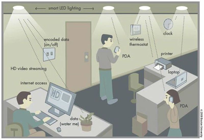 İskoçya Edinburgh Üniversitesi'nden Profesör Harald Haas tarafından geliştirilen Li-Fi radyo dalgalarını değil görünür ışık tayfını kullanarak veri aktarıyor. Bir alıcıya ikili (binary) bilgi gönderirken son derece hızlı bir şekilde açılıp kapanan flaş ampulleri kullanıyor ve bu da çok kısa bir süre içinde çok büyük veri aktarımı sağlıyor. Li-Fi için standart bir LED lambası gibi bir ışık kaynağı, bir internet bağlantısı ve bir foto dedektör yeterli. Hız açısından çok daha avantajlı olan Li-Fi maliyet olarak da Wi-Fi'dan çok daha ucuz.