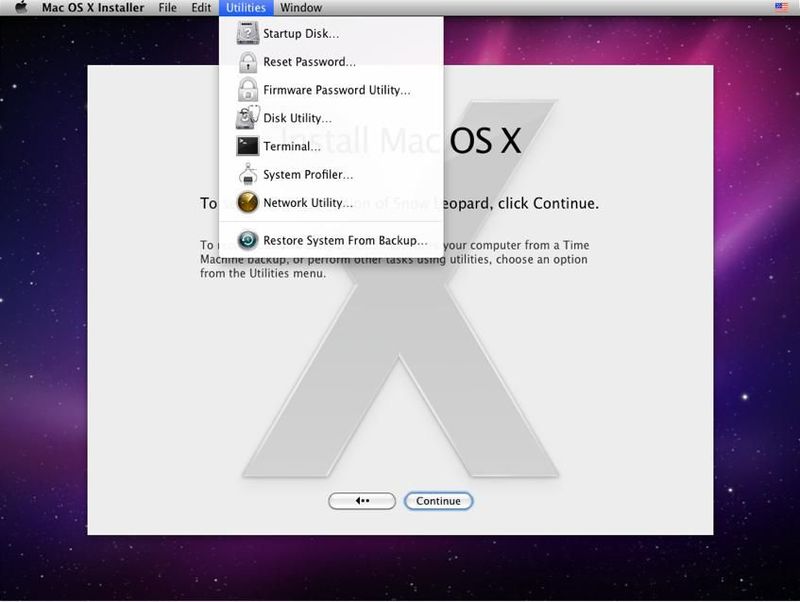 Güvenli kipte açamadıysanız, hala aynı üzgün elmayla karşı karşıyaysanız, biryerlerden Mac'iniz ile birlikte gelen yükleme cd'sini bulmaya çalışın, muhtemelen atmamışsınızdır. Diski yerleştirin ve yuttuktan sonra bilgisayarı zorla kapatın (güç düğmesin basılı tutun). Daha sonra aynı demin yaptığınız zamanlamada, bu sefer C tuşuna basılı tutun. Yine biraz zaman alacak, elinizi çekmeden ekran mavileşinceye kadar bırakmayın. Ekranda o pembeliği gördüğünüzde yüzünüzdeki mutluluğu tahmin edebiliyorum :) Ancak daha hiçbir sey olmadı, bu sadece bilgisayarı cd'den açabildiğinizi gösteriyor. Gelen ekrandan dil seçeneğinizi yaptıktan sonra, sakın yüklemeyi seçmeyin. Önce yukarıda 'Mac OS X Installer' yazan yerin yanında bulacağınız 'Utilities' sekmesindekileri deneyeceğiz :)
