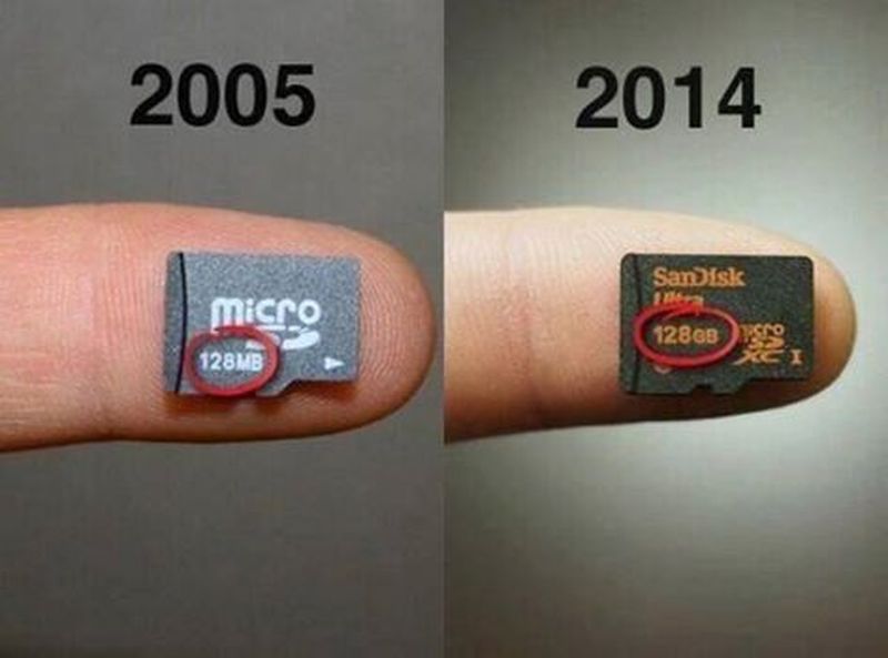 Fotoğraf 2. 128 MB x [2 x 2 x 2 x 2 x 2 x 2 x 2 x 2 x 2 x 2] = 128 MB x 210 = 128 GB 2005 ila 2014 yılları arası teknolojik gelişmeye örnek