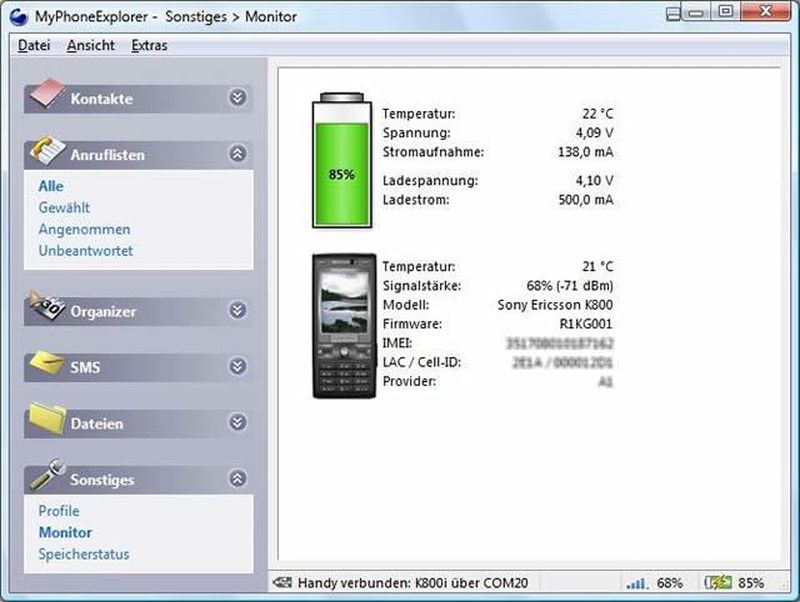 Programın kullanıcı arayüzü, karmaşık olmayan bir yapıya sahip. Sol panelde yukarıdan aşağıya doğru Kişiler, Çağrılar, Ajanda, Mesajlar, Dosyalar, Diğer Bilgiler adında sekmeler ve bunların altında bağladığımız cihaza yönelik alt sekmeler bulundurmaktadır.