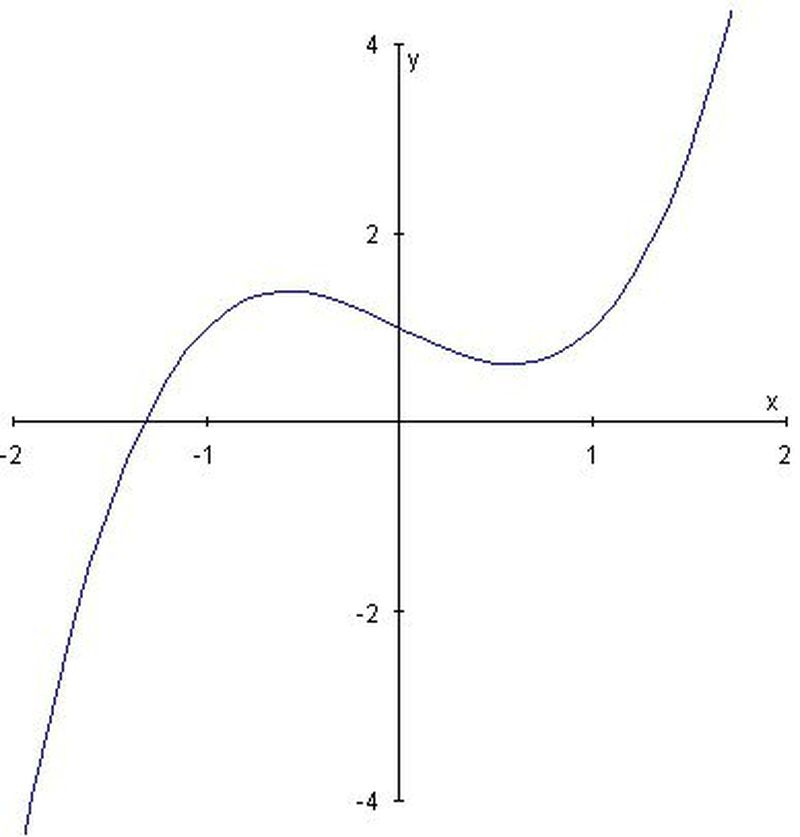 Sağdaki resimde gördüğümüz fonksiyonun kökünü bulmaya çalışalım. f, bir polinom fonksiyon olduğundan türevi kolaylıkla bulunabiliyor: f'(x) = 3x2-1