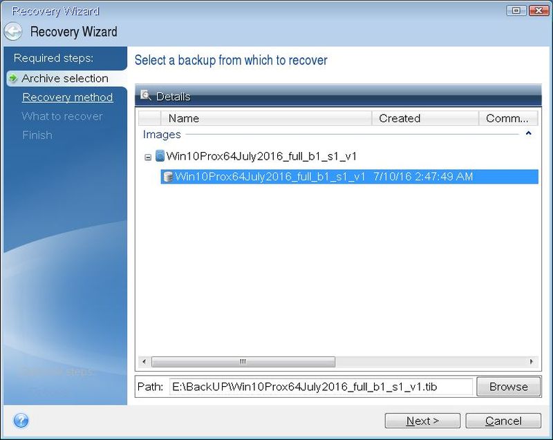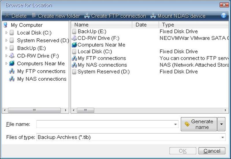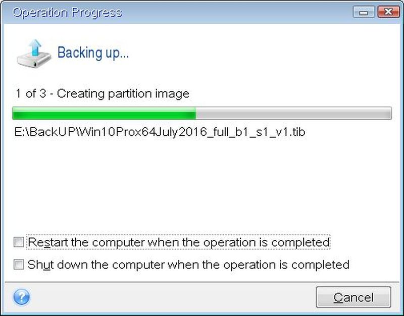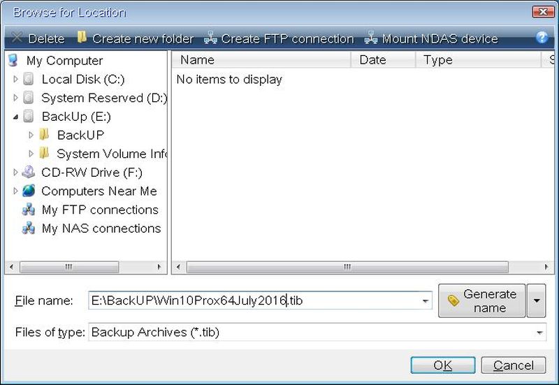 Yeni bir yedek kaydı oluşturduğunuzda ise, eğer aynı isimli bir başka dosya varsa Acronis True Image, aynı isimli dosyayı silmez ya da değiştirmez. Onun yerine aynı adla oluşturulmak istenen dosyaya bir “sayı” ekler. Örneğin; Win10Prox64_July_full_2016_b1_s1_v1.tib isimli dosyanın ismi ile benzer isimde yeni bir kayıt oluşturulmak istenildiğinde _Win10Prox64_July_full_2016_b1_s1_v1-2.tib_ şeklinde yeni dosyaya sıra sayısı eklenir.