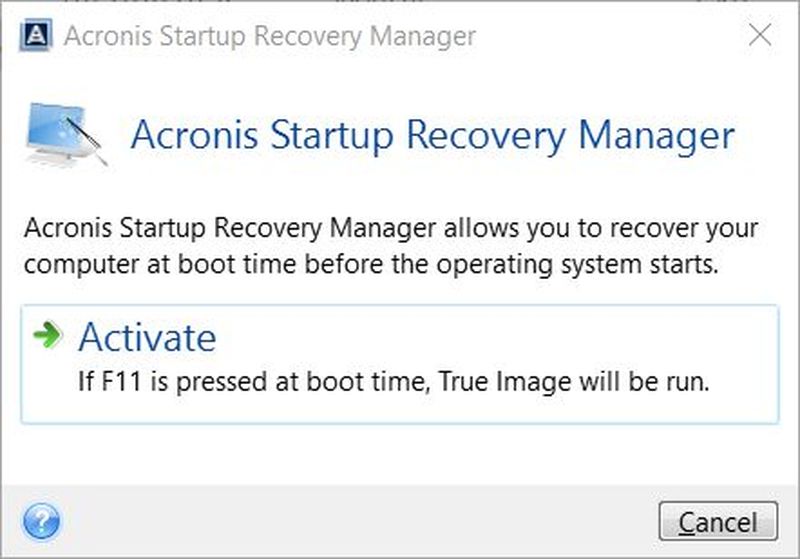 Şekil 2. 2. Açılan Windows penceresinden Activate Acronis Startup Recovery Manager (Türkçe. Acronis Başlangıç Kurtarma Yöneticisini Etkinleştirin) uygulaması tıklanmalıdır. İlgili ayar aktive edildikten sonra bilgisayar açılırken F11 tuşuna basıldığında Acronis True Image 2016’ya giriş sağlanacaktır ve sistem her açıldığında bu sorguyu gerçekleştirecektir. Bu ayar, kullanıcının olası sistem çökmelerine karşı alabileceği en etkin önlemdir.