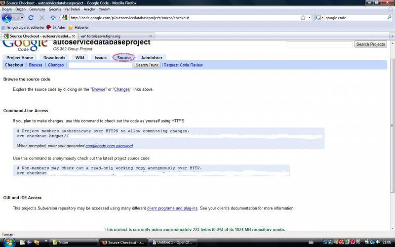 Şimdi ise TortoiseSVN ve Google Code ile bir SVN örneğini inceleyelim.