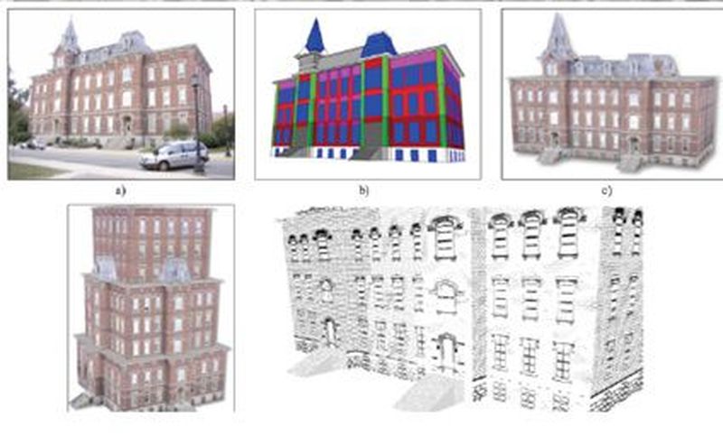 Diyelim gramerimiz var, ama parametrelerini ve gideceği örneği bilmiyoruz. Şimdi ne yapabiliriz? Bu konudaki çalışma ise Purdue’den geliyor: en iyisi gramer parametrelerini fotoğraflardan bulalım demişler (İnteraktif Mimari Görselleştirme için Stil Gramerleri – Style Grammars for Interactive Visualization of Architecture). Bir binanın fotoğraflarını, basit ve kutu gibi bir binaya yapıştırıyorlar. Daha sonra bu binayı işleyerek kapı, pencere, çatı, sütun, süs püs ne varsa buluyorlar. Daha sonra binanın bu özelliklerinin parametrelerini hesaplayarak gramerdeki yerine koyuyorlar ve böylece gramer kullanılabilir bir şekilde tamamlanıyor. Bu grameri, parametreleri ve hatta ilk binadan kesilen desenleri yordamsal modelleme ile anında başka binalara uygulayabiliyor veya stilini değiştirerek çeşitli şekillerde ekrana imgeleyebiliyorsunuz.