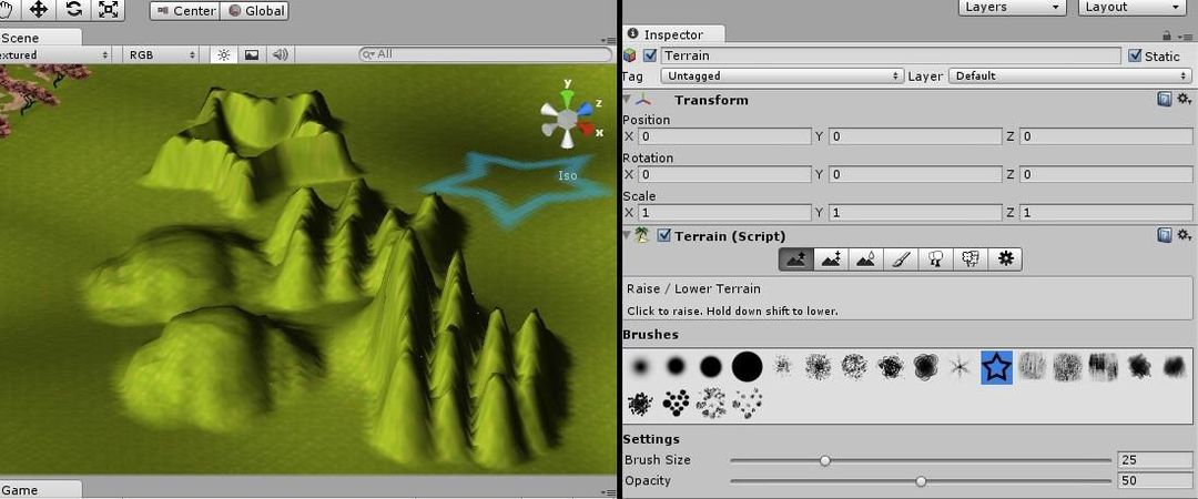 İngilizce'deki karşılığı ‘terrain’ olan ve Unity’de de bu adla kullanılan arazi(zemin) nesnelerini temel olarak üç farklı şekilde değiştirip, onlara istediğimiz şekli verebiliyoruz.